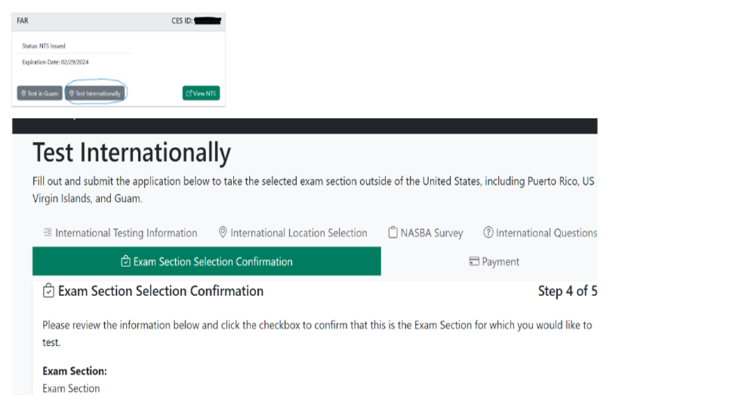 international testing fee, applicable only to CPA candidates testing outside